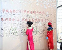 2015年2月8日,華威醫(yī)藥“因?yàn)槟銈?所以精彩”新春聯(lián)歡晚會(huì)在南京金奧費(fèi)爾蒙酒店隆重舉行。下午16點(diǎn)整,南京市棲霞區(qū)委領(lǐng)導(dǎo)、江蘇生命科技創(chuàng)新園管委會(huì)領(lǐng)導(dǎo)、江蘇高科技投資集團(tuán)領(lǐng)導(dǎo)、禮來(lái)亞洲基金領(lǐng)導(dǎo)及華威醫(yī)藥全體同仁共250余位嘉賓出席華威醫(yī)藥年度盛宴。在晚會(huì)主持人的新春祝福聲中,與會(huì)嘉賓共同觀看了“我們的2014”開場(chǎng)視頻,共同分享和回顧了華威醫(yī)藥2014年度在各方面取得的優(yōu)異成績(jī)和精彩瞬間。