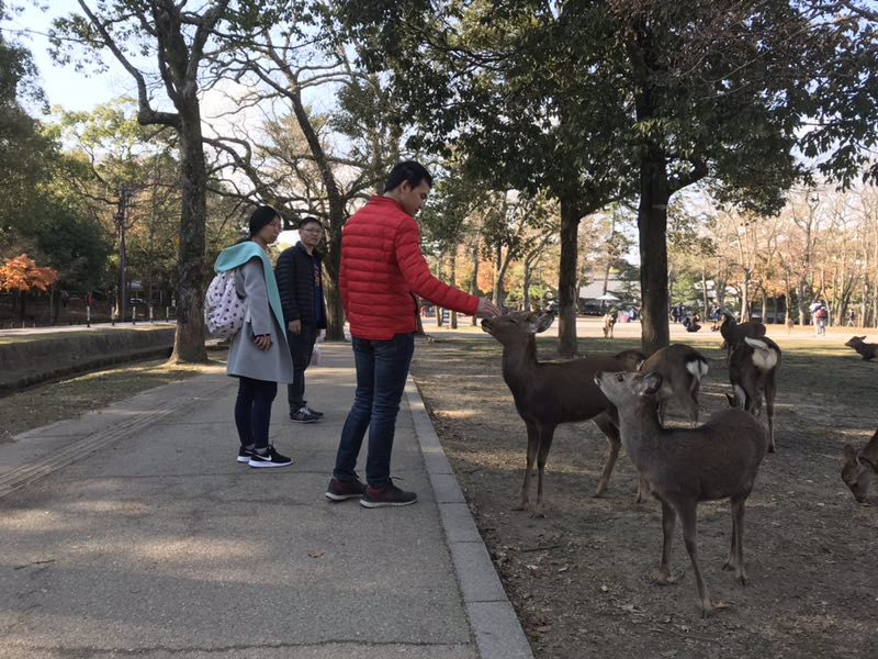 華威小伙伴們最后一站便是日本歷史和文化的發(fā)祥地之一——奈良,神鹿公園就是其中最著名的景點(diǎn)。這里的獨(dú)特之處是因?yàn)閳@中有1200多只梅花鹿,漫步園中,總是有神鹿相伴,數(shù)百年老楓樹,虬枝遒勁。
