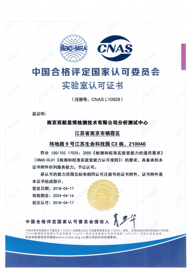 2018年4月26日,華威醫(yī)藥集團(tuán)全資子公司南京西默思博檢測(cè)技術(shù)有限公司分析測(cè)試中心取得國(guó)家CNAS實(shí)驗(yàn)室認(rèn)可證書(shū),標(biāo)志著公司硬件設(shè)施、管理體系和檢測(cè)能力均達(dá)到國(guó)際認(rèn)可準(zhǔn)則要求,實(shí)驗(yàn)室具備開(kāi)展相應(yīng)檢測(cè)項(xiàng)目、其出具的檢測(cè)報(bào)告具有權(quán)威性和國(guó)際公信力。