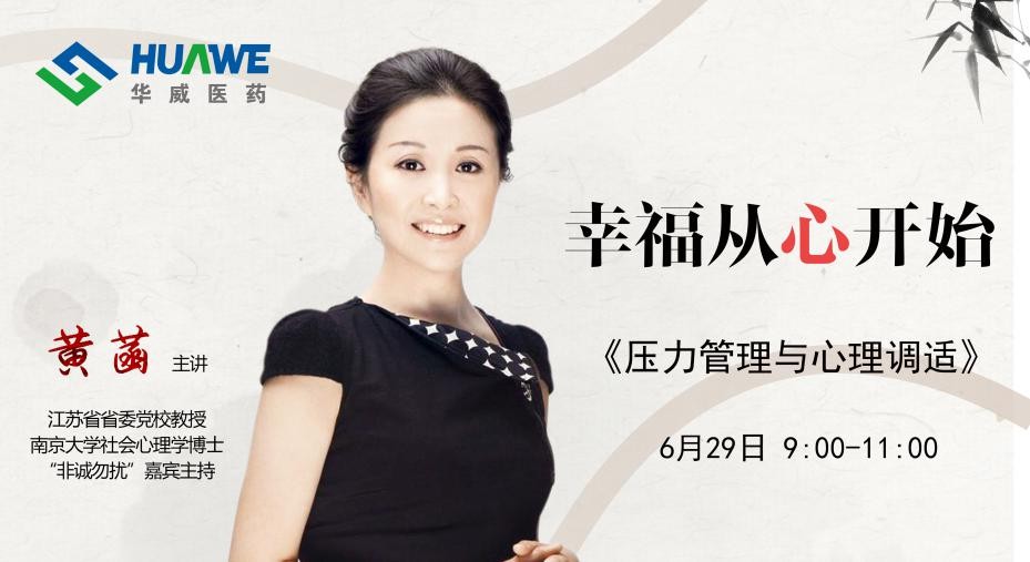 2019年6月29日上午,細(xì)雨蒙蒙阻擋不了慕名而來的人們紛至沓來的腳步,《非城勿擾》嘉賓主持、江蘇省委黨校教授、南京大學(xué)社會(huì)心理學(xué)博士黃菡老師,應(yīng)邀走進(jìn)華威醫(yī)藥,為約150位華威員工帶來了一場(chǎng)精彩紛呈的壓力管理與心理調(diào)適人文講座。