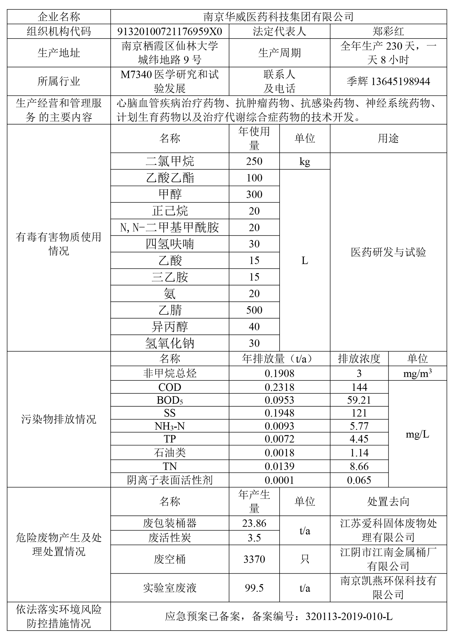 南京華威醫(yī)藥科技集團有限公司清潔生產(chǎn)審核環(huán)境信息公開表
