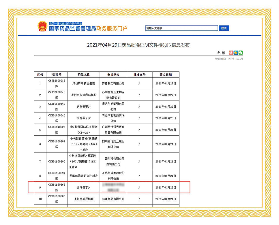 2021年4月22日,國家藥品監(jiān)督管理局正式發(fā)布通知,華威醫(yī)藥接受委托申報(bào)的西咪替丁片項(xiàng)目正式通過仿制藥質(zhì)量和療效一致性評價(jià)。值得關(guān)注的是,這是國內(nèi)第二家通過西咪替丁片的企業(yè)。