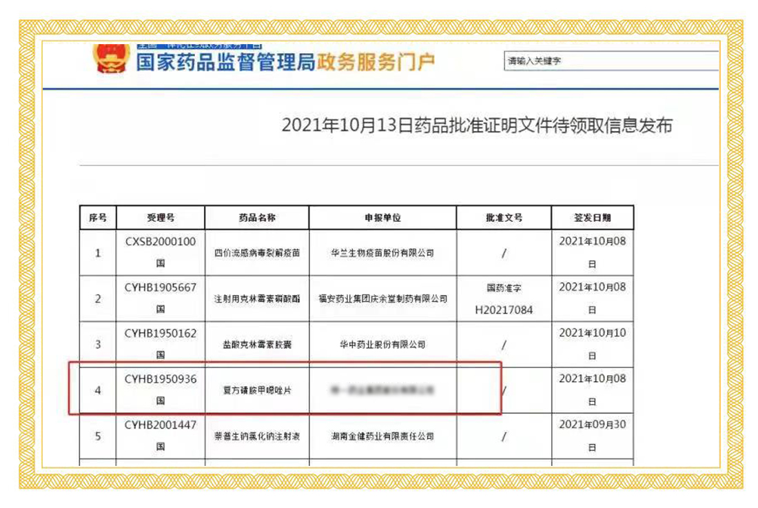 2021年9月10日,國家藥品監(jiān)督管理局正式發(fā)布通知,華威醫(yī)藥接受委托申報(bào)的奧硝唑片項(xiàng)目正式通過仿制藥質(zhì)量和療效一致性評價(jià)。
