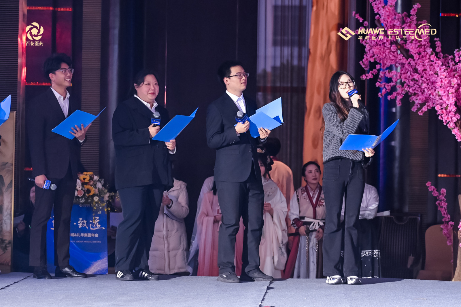 氣勢(shì)恢宏、勢(shì)如破竹的舞龍開(kāi)場(chǎng)秀《龍耀九州》、行云流水輕盈翩躚的中華古典舞《百舞驚鴻》、掌握財(cái)富密碼,讓現(xiàn)場(chǎng)氛圍感滿滿的小品《財(cái)神來(lái)敲我家門(mén)》、奔放節(jié)奏,曼妙身姿的舞蹈《疆舞飛揚(yáng)》、用歌曲訴說(shuō)遙遠(yuǎn)星河神秘浪漫的獨(dú)唱《水星記》、將藥研故事搬上舞臺(tái),以輕松幽默的方式展現(xiàn)工作時(shí)光的小品《誰(shuí)來(lái)拯救周末》、青春律動(dòng)的時(shí)尚舞蹈《Miniskrit》、京劇發(fā)展下重要里程碑代表作——戲曲《梨花頌》、獨(dú)具匠心,用聲音“描繪”角色的配音秀《公司的那些事》以及以服飾為載體,以走秀為舞臺(tái),跨越時(shí)空華麗邂逅的走秀《漢風(fēng)雅韻》,讓2024年會(huì)上半場(chǎng)的氣氛持續(xù)沸騰。