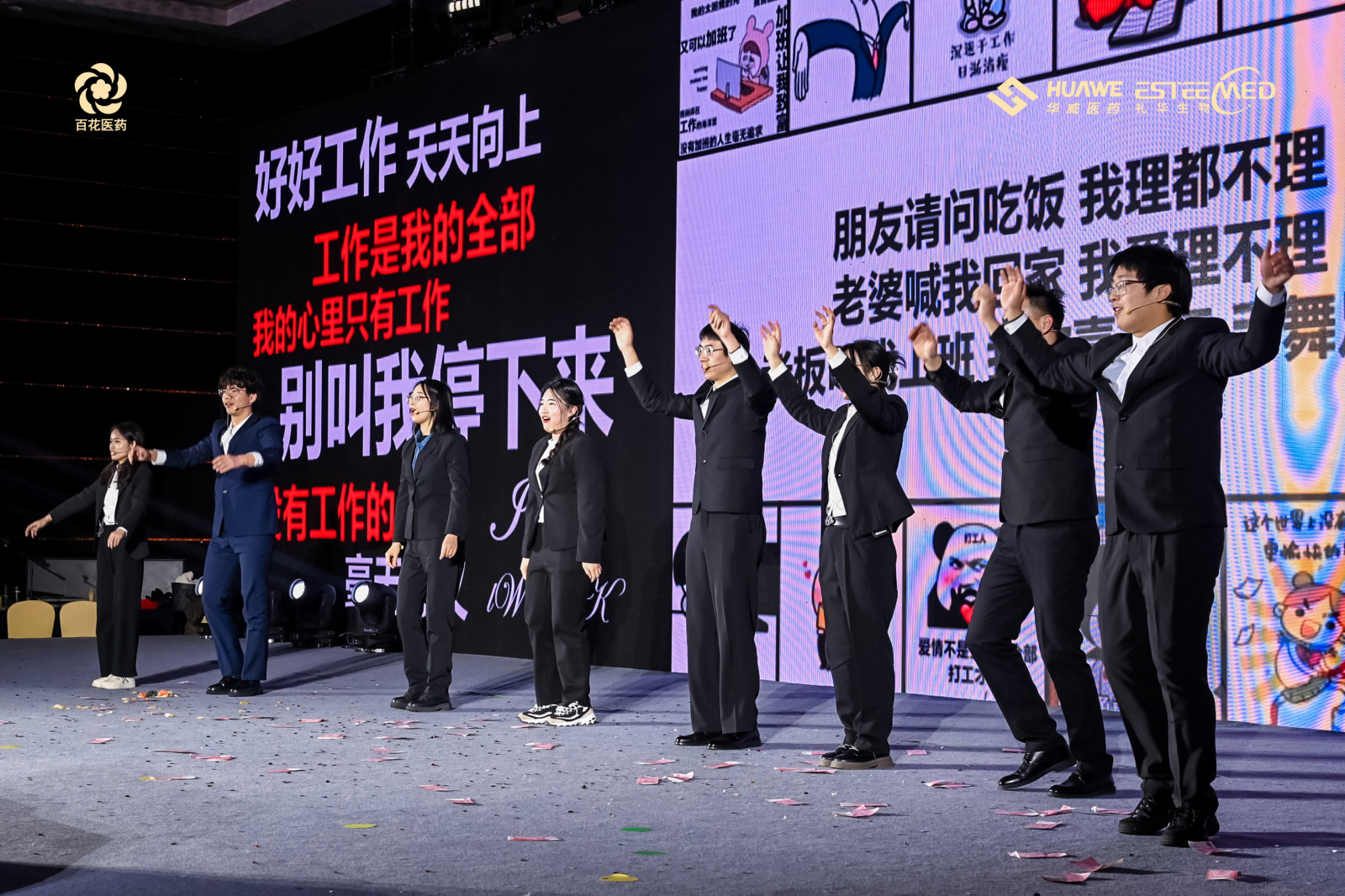 讓人捧腹大笑、嗨翻全場(chǎng)的小品《艱難抉擇》、用最純粹的聲音詮釋對(duì)音樂(lè)的熱愛(ài)和執(zhí)著的歌曲《華威好聲音》、全新“黑科技”升級(jí)的互聯(lián)網(wǎng)問(wèn)診小品《體檢》、活力四射神采飛揚(yáng),展示青春活力和激情的舞蹈《Tell me》、寓意著人生旅程中不斷奮斗、不懈追求的歌舞《一路生花》、代表研發(fā)板塊藥研心聲的朗誦《我愛(ài)上班》、凝聚中華民族精神力量與審美意蘊(yùn)的巾幗傳奇舞蹈《刀馬旦》、追求生活如同四季一般豐富多彩的歌舞《如愿》以及凸顯熱愛(ài),不斷奮斗向前的歌曲大合唱《倔強(qiáng)》,更讓現(xiàn)場(chǎng)的氣氛達(dá)到頂峰。