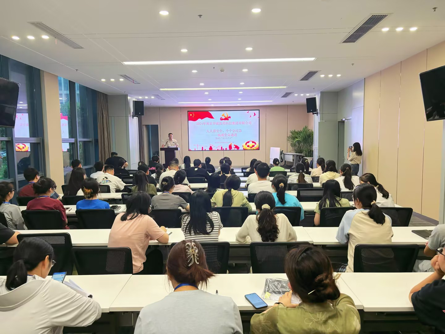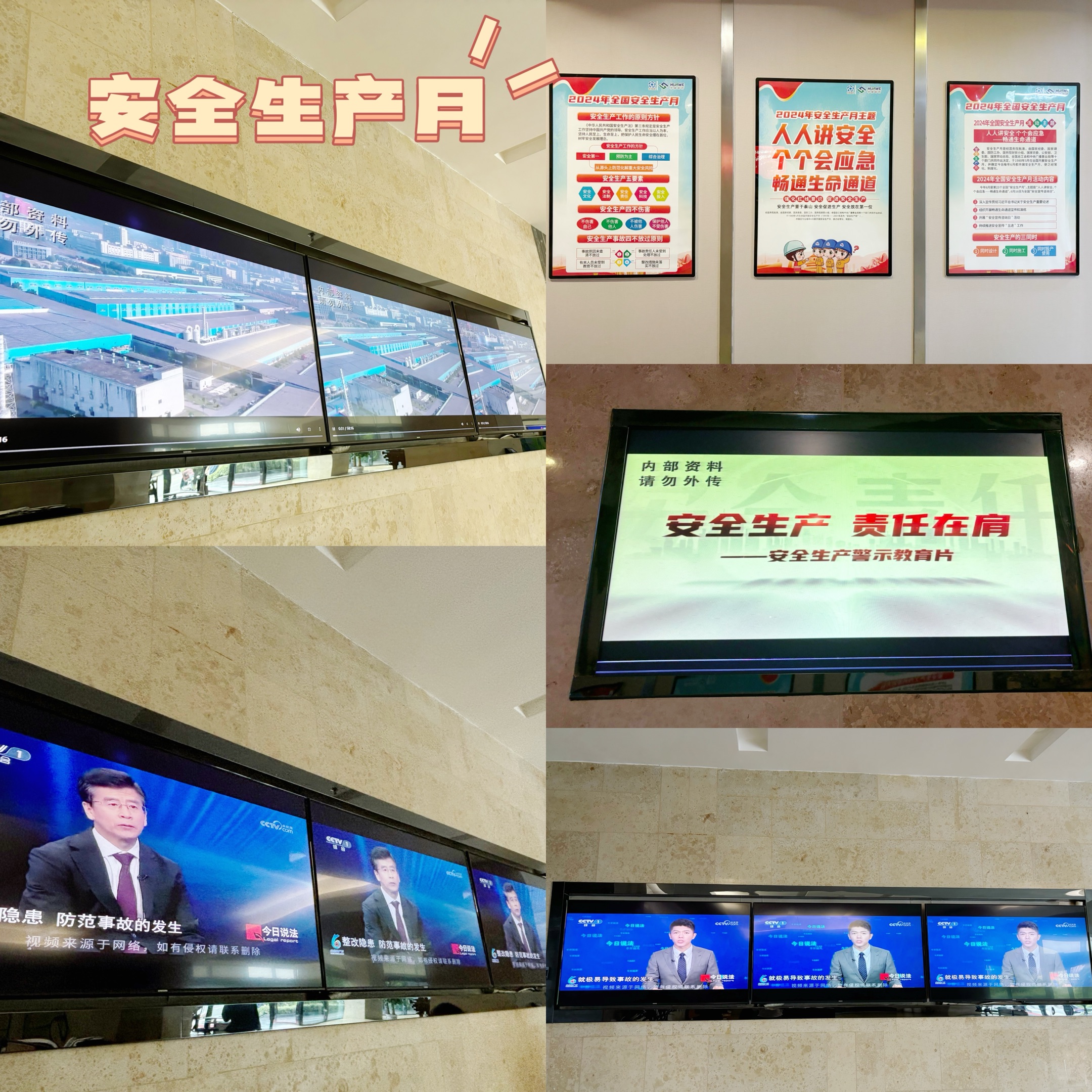 線上線下齊發(fā)力,安全宣傳見實效!為充分發(fā)揮安全生產月宣傳教育源頭性、基礎性作用,華威醫(yī)藥找準關鍵點、緊抓突破口,堅持“安全工作,宣傳先行”,持續(xù)在兩棟研發(fā)大樓的安全宣傳上下功夫、做文章。通過設置宣傳展板、宣傳海報、以及大屏幕視頻展示等宣傳舉措,持續(xù)地、直觀地將安全宣傳工作落到實處,引導員工學會發(fā)現和消除安全隱患。